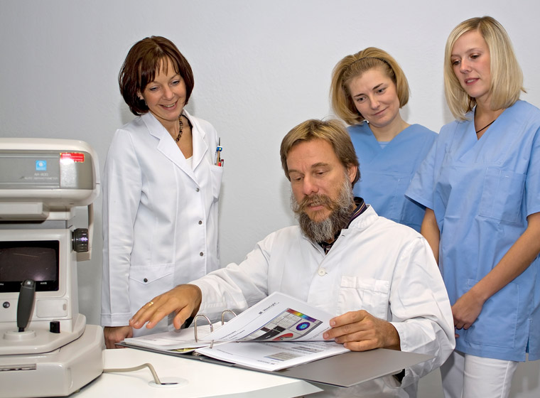Unser Team rund um Prof. Dr. Andreas Frohn besteht aus erfahrenen und kompetenten medizinischen Fachangestellten, Operations-Schwestern und einer Orthoptistin, die Sie bei allen Fragen und Wünschen rund um Ihre Sehkraft freundlich und engagiert unterstützen.